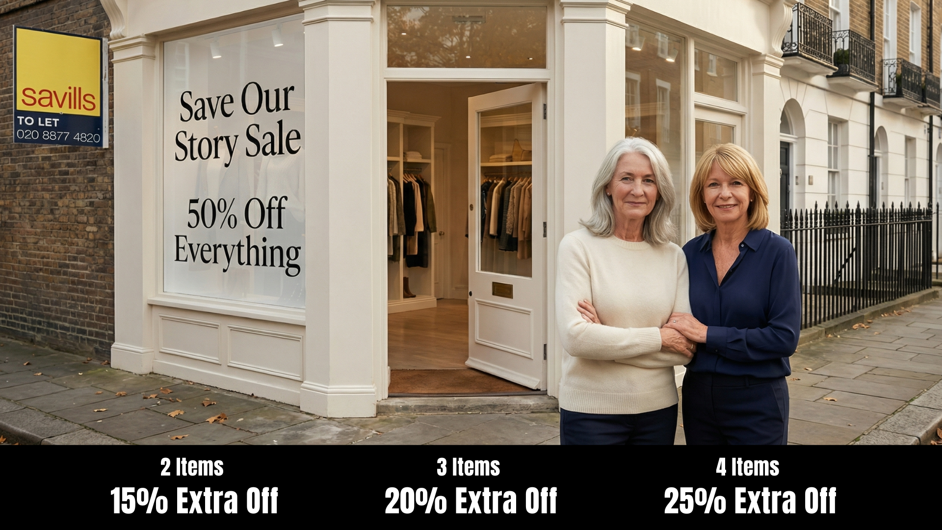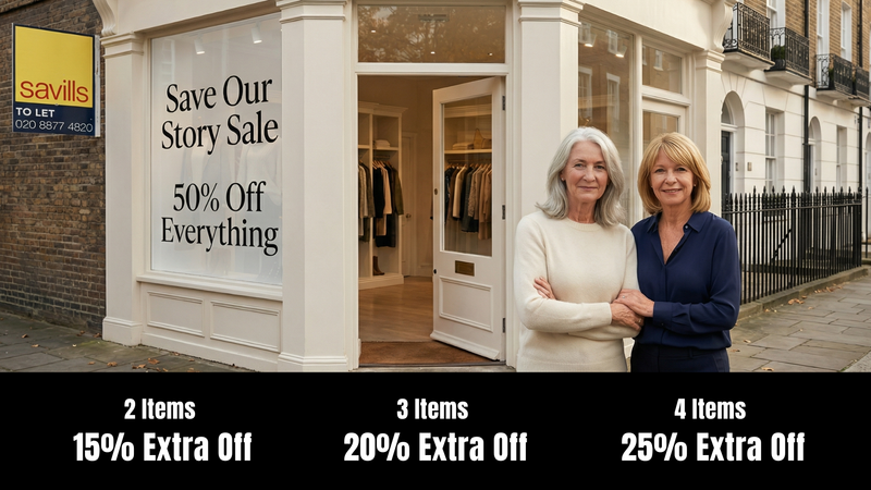 If we can clear our stock today, we survive. We pay what we owe, and we get the chance to reopen a smaller boutique to welcome you home again.