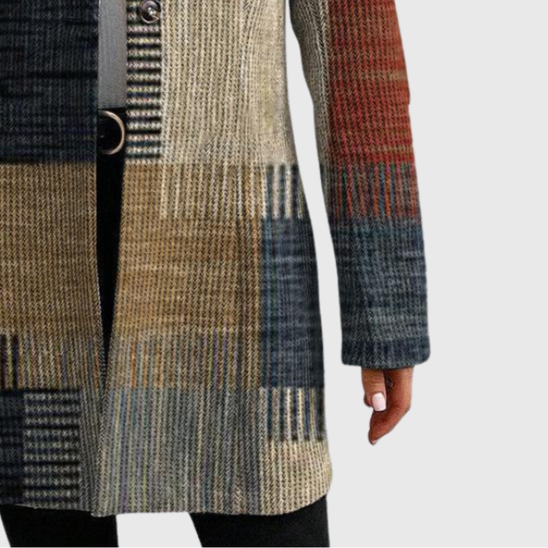 Elevate your outerwear with the Jill Patchwork Check Blazer a beautifully crafted piece that blends heritage textures with modern sophistication. Featuring an artistic arrangement of woven checks in warm earthy tones, this coat adds instant character to any outfit whilst keeping you stylishly warm.