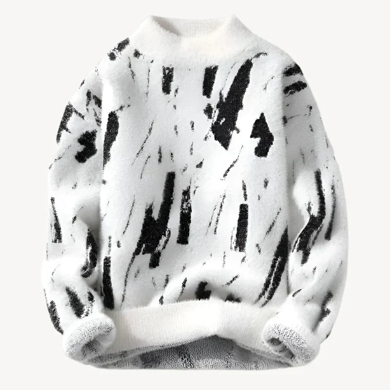 The Alana Abstract Brushstroke Jumper combines contemporary art with cosy comfort — featuring bold black brushstroke patterns on plush white fabric for a look that's both creative and effortlessly chic. Perfect for making a style statement, casual outings, or when you want your knitwear to reflect your unique personality.